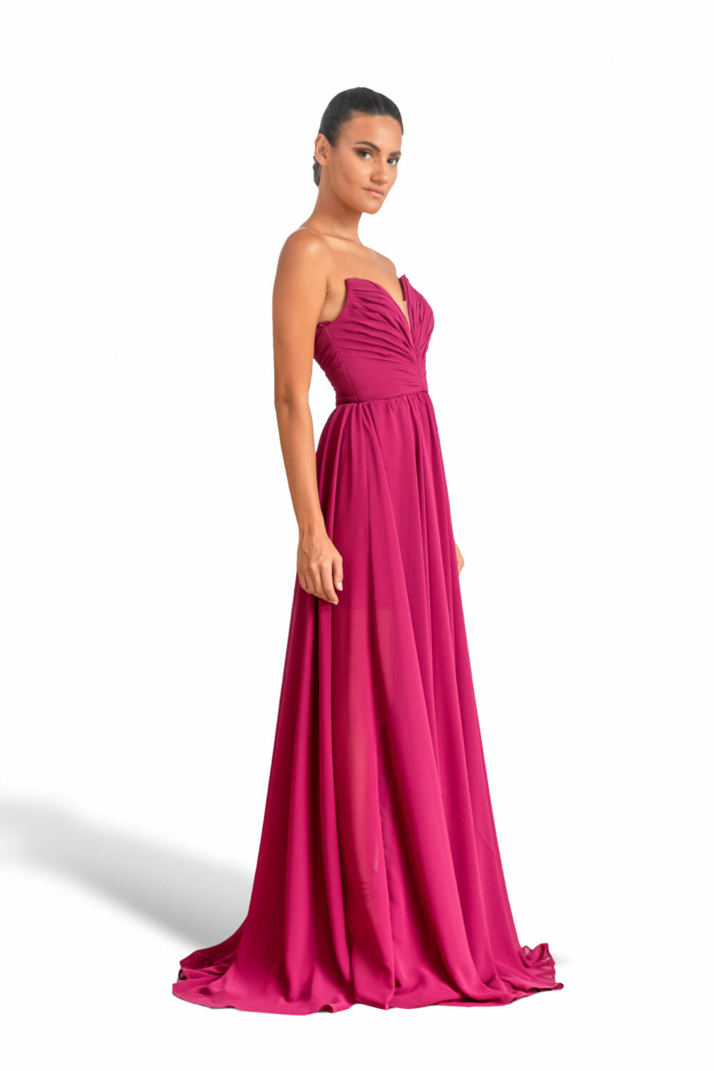 These drapes are made this way to give the upper body the perfect elongated slimmer shape, with a flowy chiffon slitted skirt add on these amazing things the organza puffy sleeves in pink which are a bomb! and guess what? You can easily remove them and have two looks at same occasion.