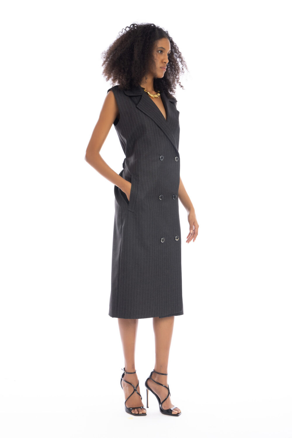 | Introducing the Serent, a stunning black sleeveless blazer dress that’s perfect