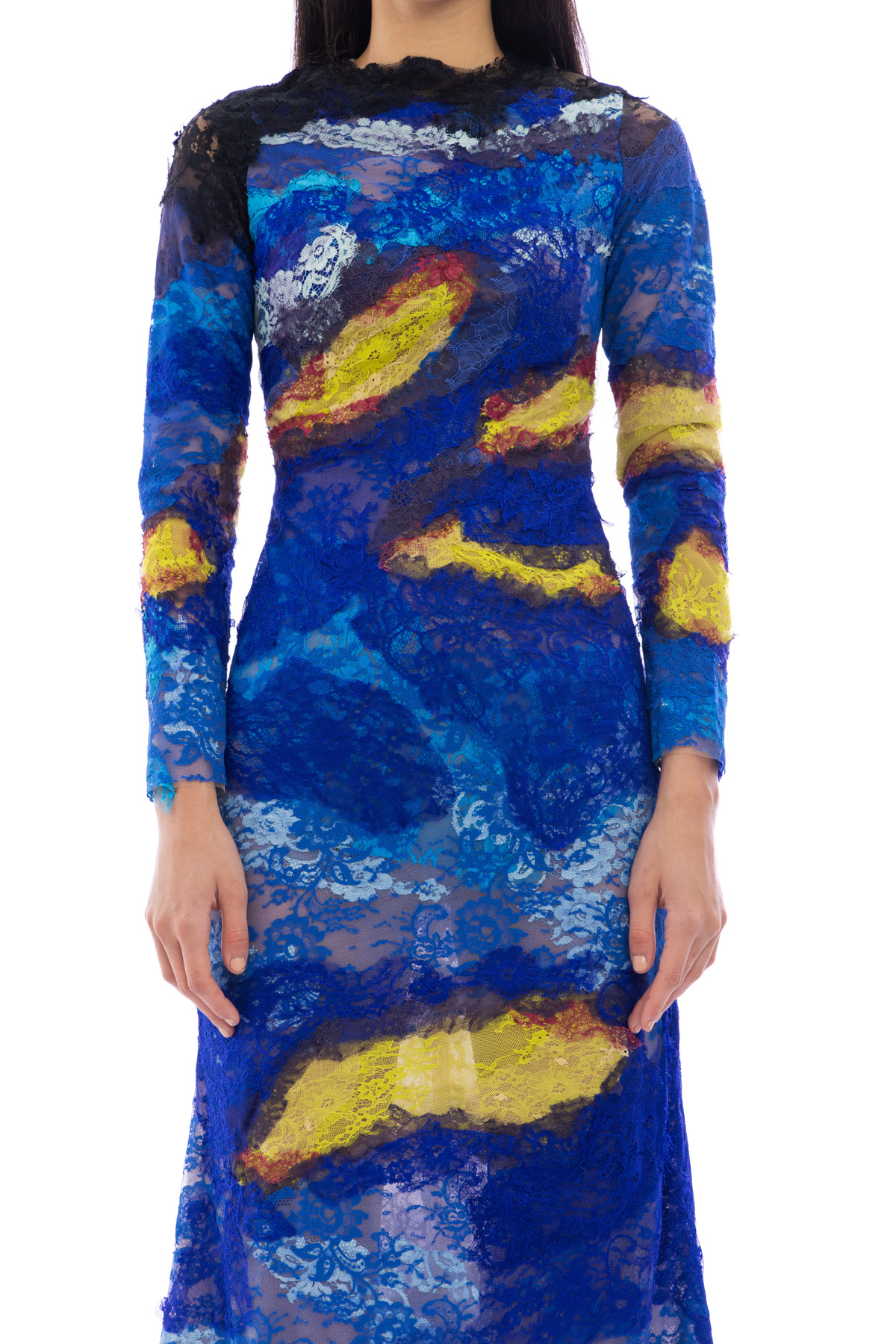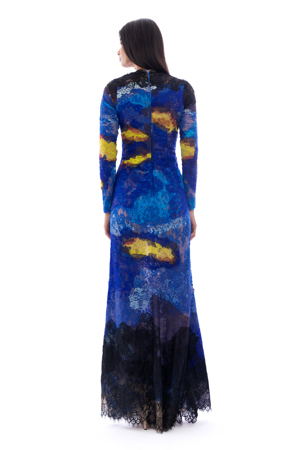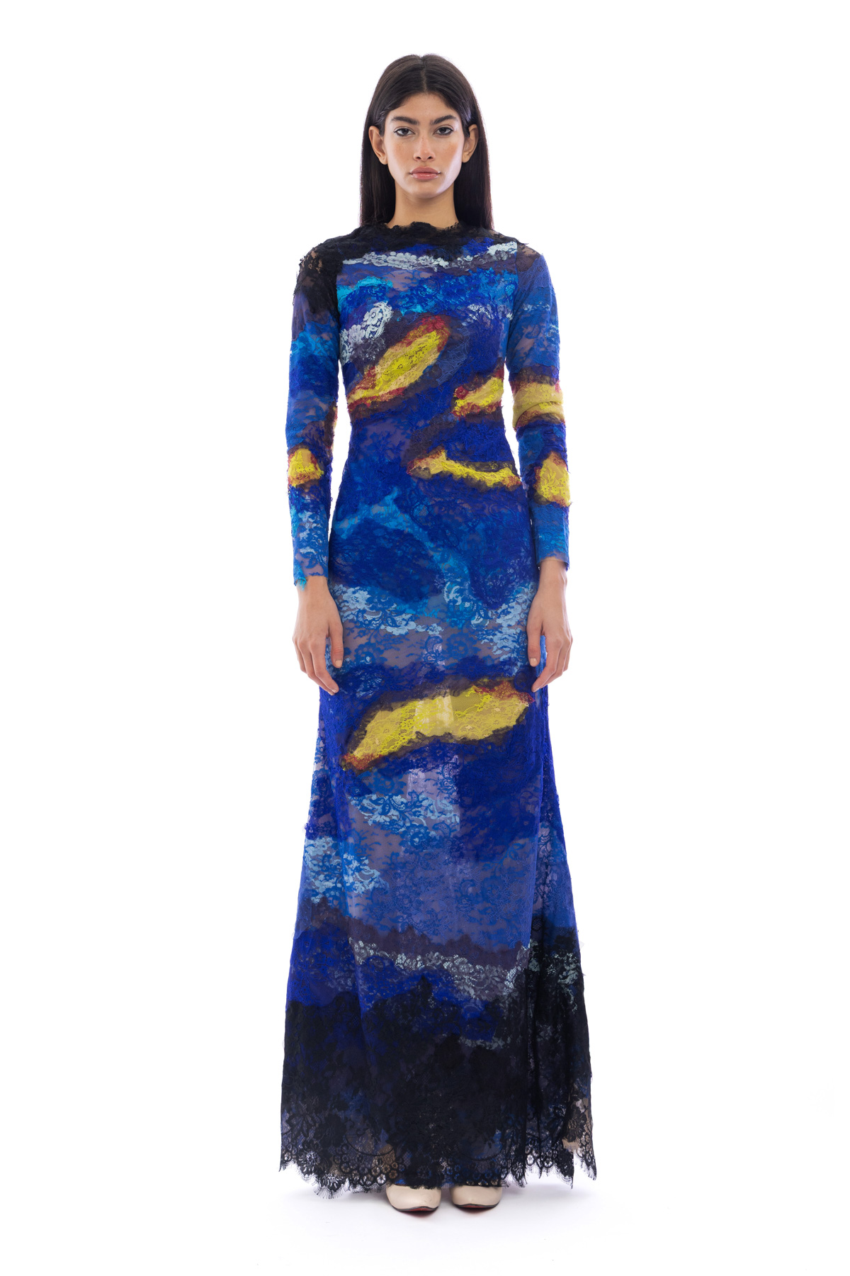 Dark floral French lace, mixture of colors and layers. Belong to a deeper emotion. On a tule base.
